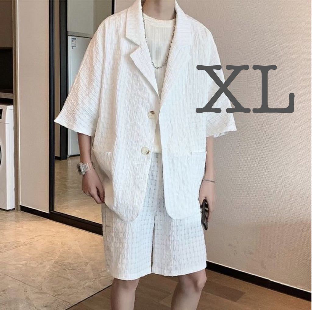 - セットアップ ジャケット パンツ 2点セット 部屋着 ワッフル ルームウェアジャケパン 上下セット ショートパンツ ユニセックス 白 XL