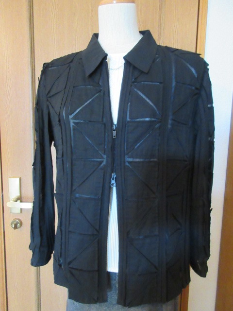 - Z)■ブランドタグCUT■【デザイナーズジャケット】■【ハンドメイド/手作り】黒/折り紙の様なお見事なパッチワーク!■