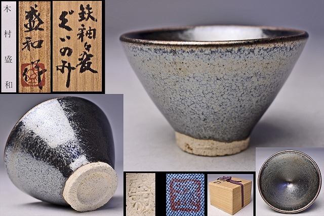 > 木村盛和 ★ 鉄釉 釉変ぐい呑 ★ 共箱 共布 栞 ★ 越前作陶 ★ メタリック感 ★ 京焼 清水焼 出身 ★ 検 木村盛康 木村盛伸
