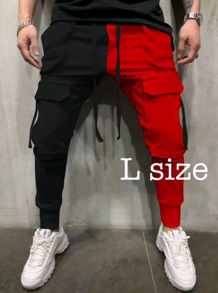 - ジョガーパンツ ストレッチ ツートン トラックパンツ カーゴパンツ 黒赤 L