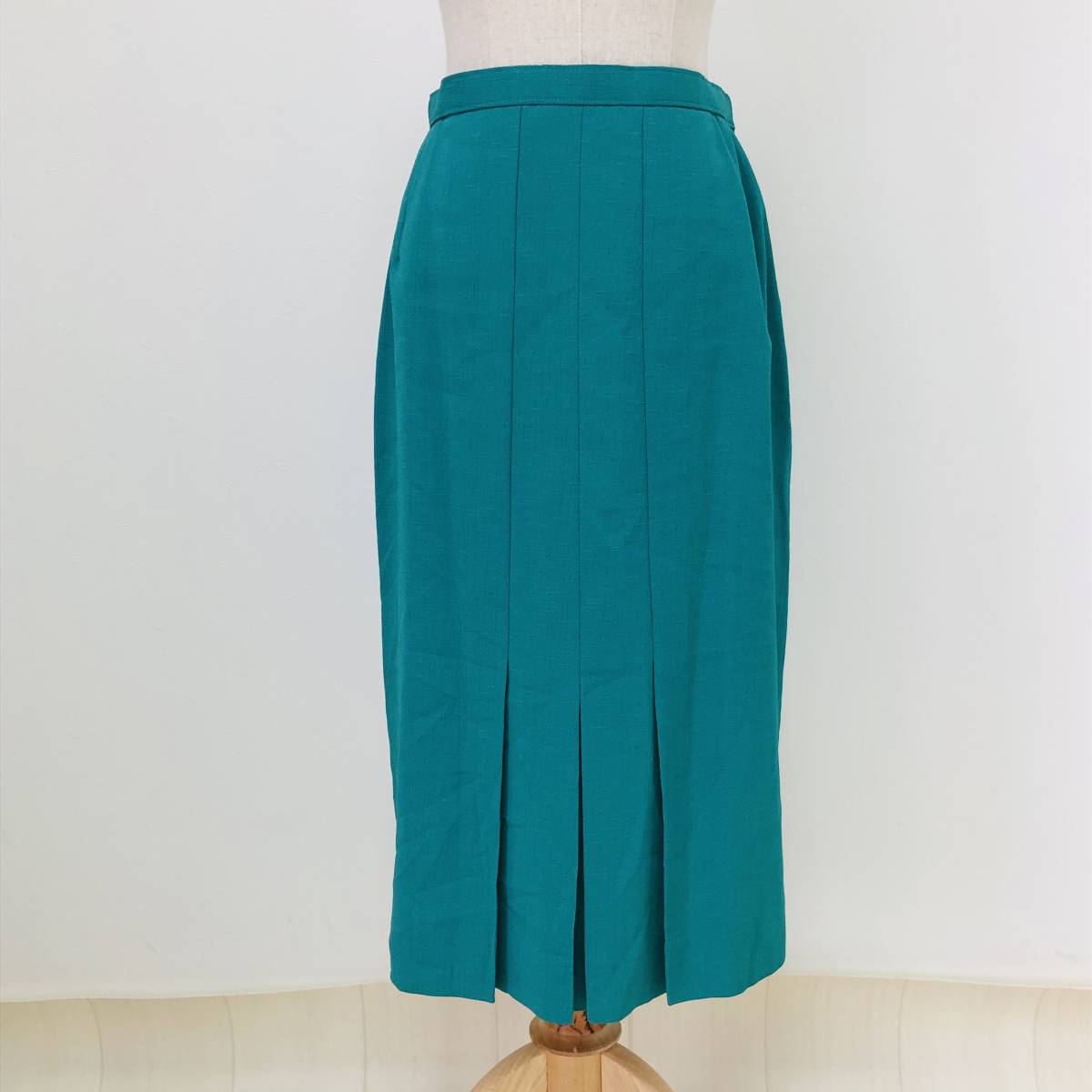 - k1406 美品 SELENNA JUNIOR セレーナジュニア スカート ひざ丈 ウエストゴム 薄手 裏地 69-94 緑 無地 シンプル エレガントガーリーチック
