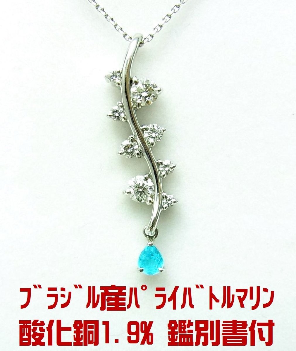 > ネオンブルーの強いブラジル産パライバトルマリン0.14ct 鑑別書付 プラチナペンダントネックレス 動画あり 送料込み