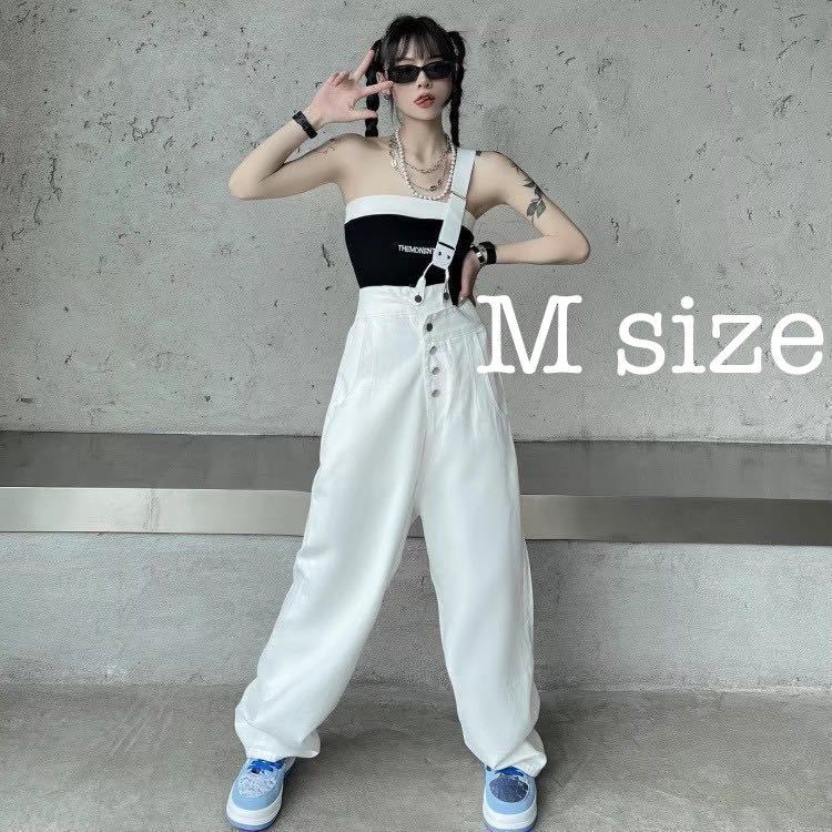 - ワイドパンツ サスペンダー ハイウエスト ボトムス サロペット M