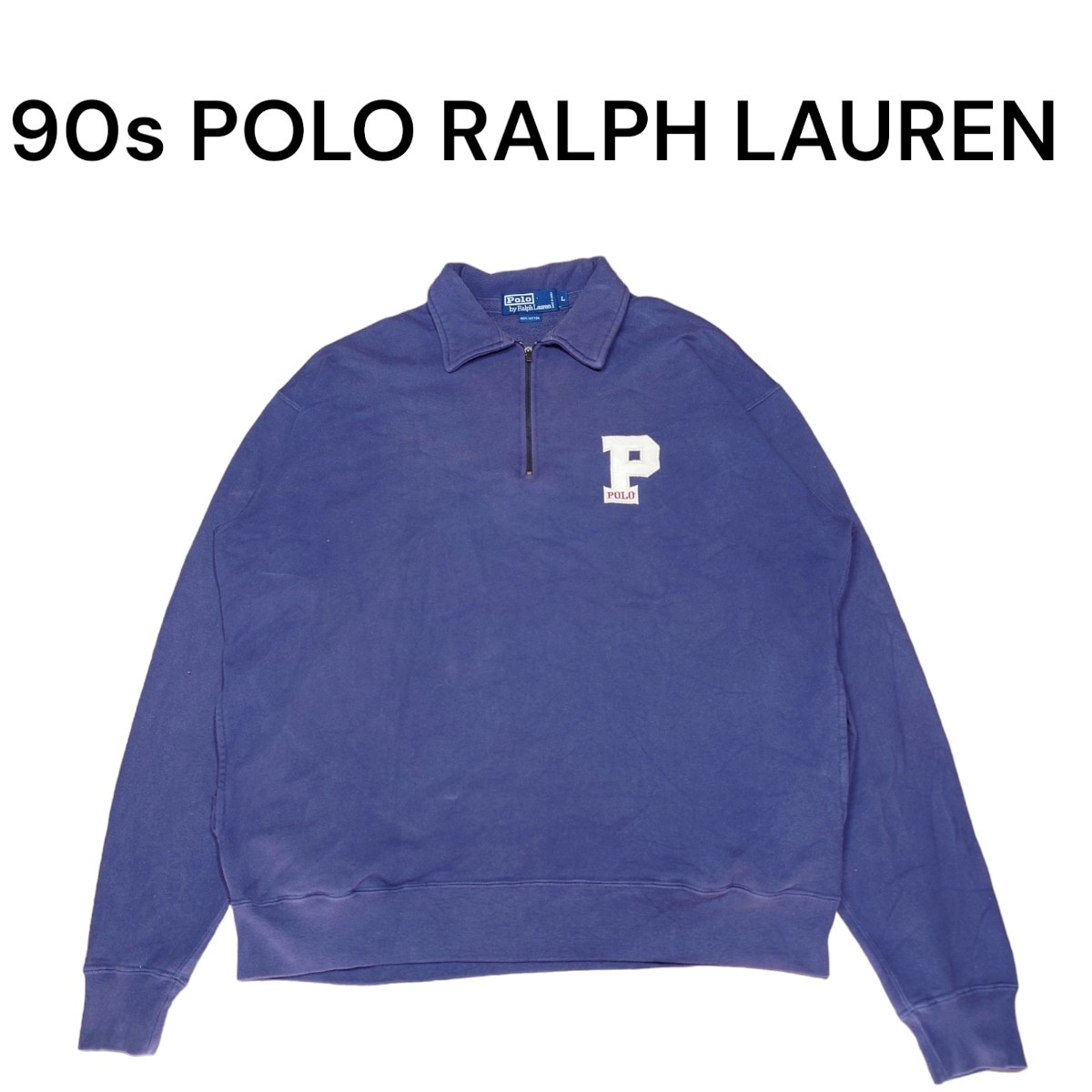 - 90s ポロラルフローレン 襟付きハージップ スウェットトレーナー ビッグロゴ
