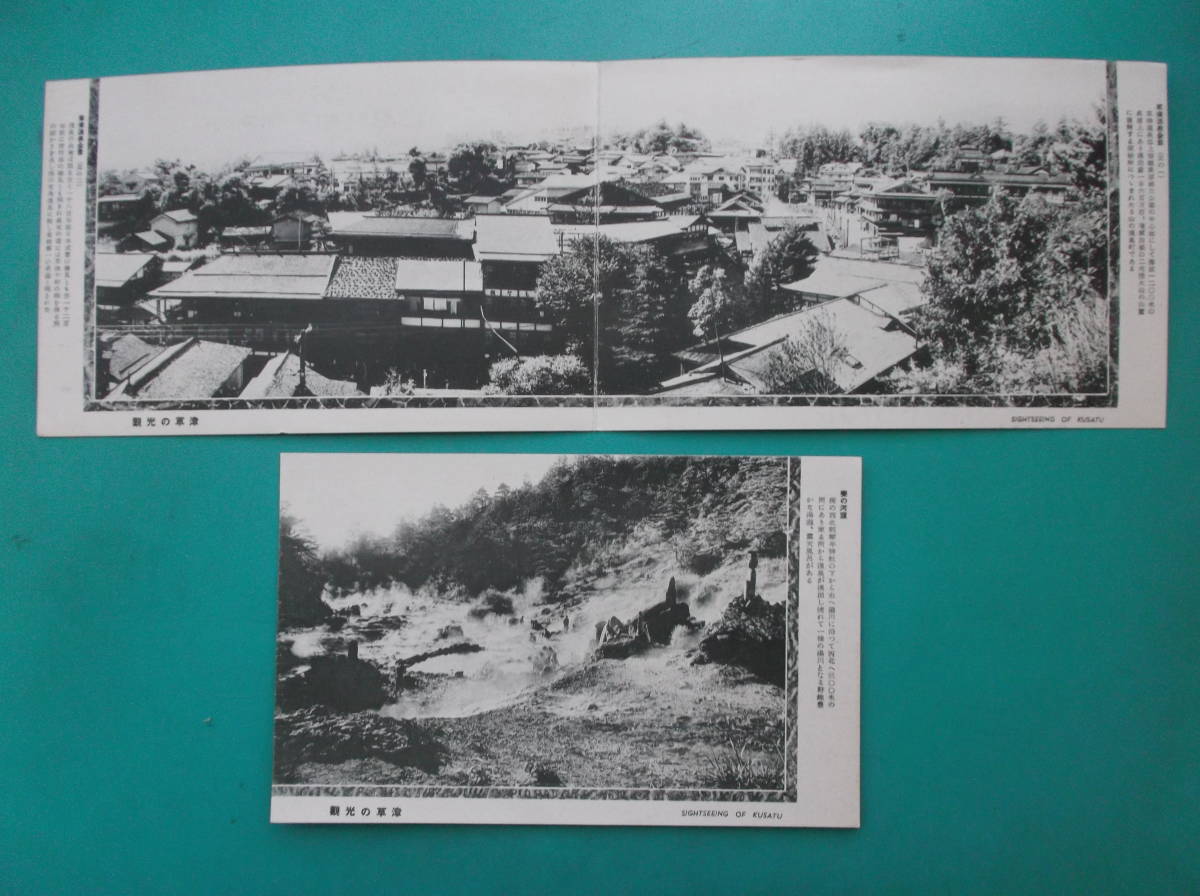 - アンティーク絵葉書 実質5枚組 湯煙り漂う 観光の草津 草津温泉全景パノラマ 湯もみ 湯畑 賽の河原 袋付