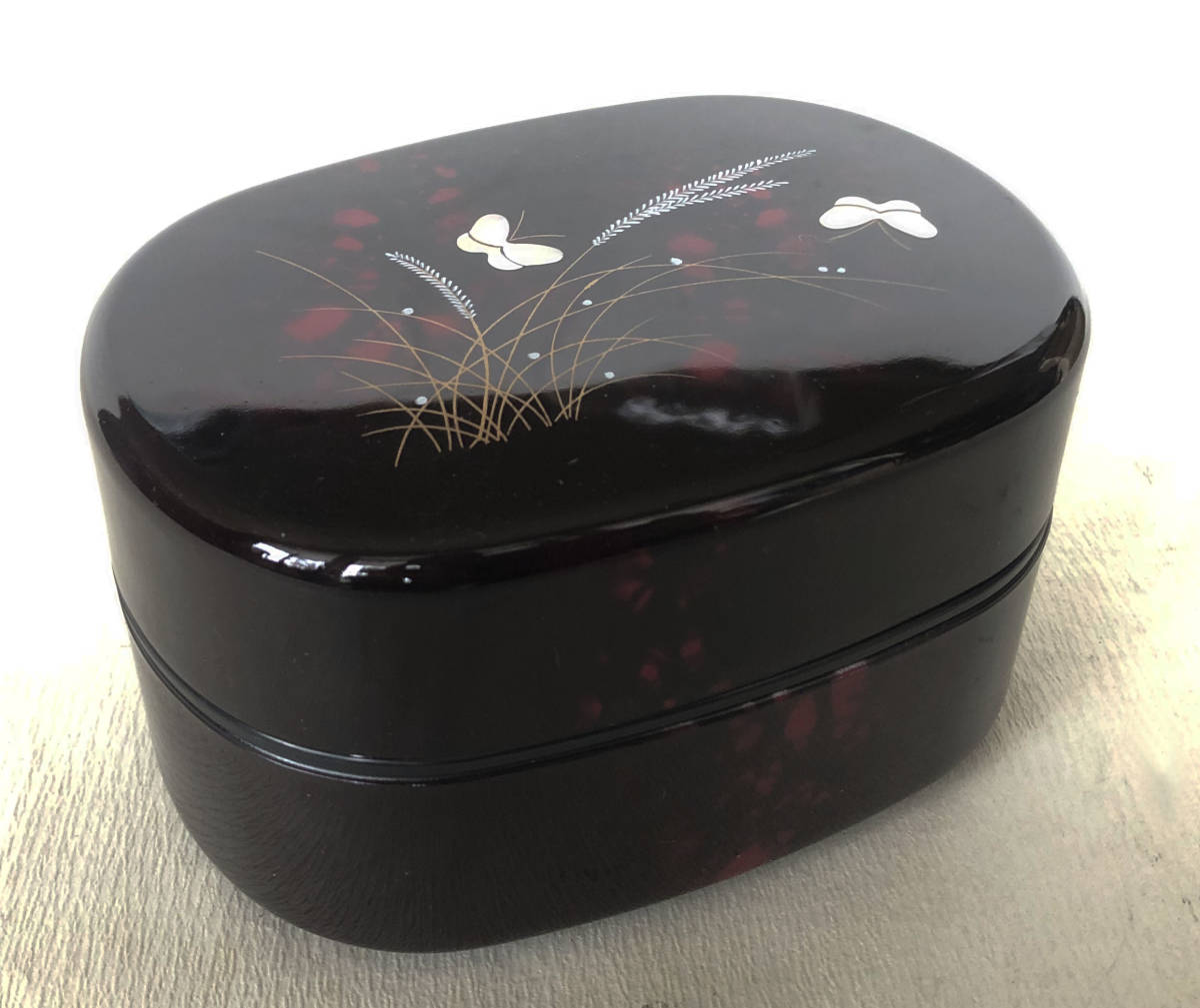 - 当箱 むさしの蝶の絵2段弁当 シール蓋付 樹脂製 日本製