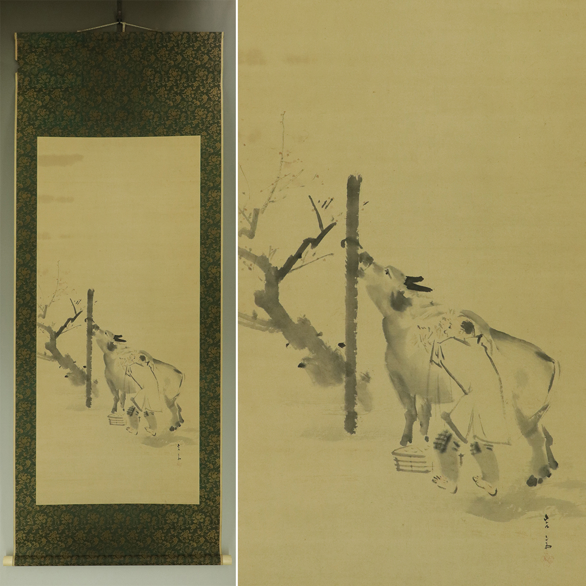 - 【真作】菊池容斎【牛の図】◆紙本◆掛軸 u09153