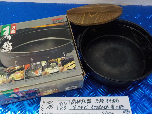- TINR3●〇南部鉄器 万能 すき鍋 木フタ付 すき焼き鍋 寄せ鍋 中古 26cm 5-10/30(ま)