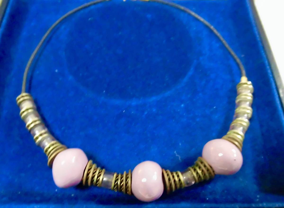- ●存在感大/アンティークチョーカーネックレス/紫パープルストーン/茶本革 アンティークメタル