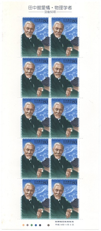 - ★平成14年文化人郵便切手 田中舘愛橘★80円1シート10枚+4枚記念押印★クリックポスト★
