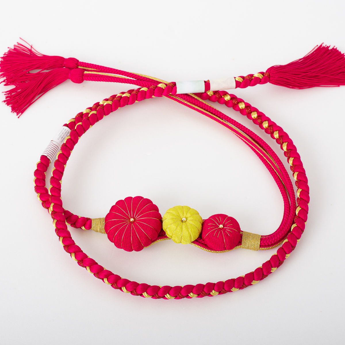 - 振袖用帯締め 帯〆 花飾り パール 丸組 正絹手組 撚房 No.3516