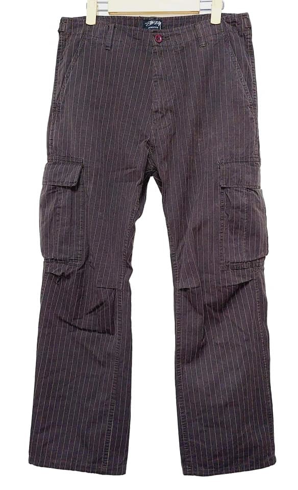 - 超激レア希少2006年製!定価¥14490!新品タグ付き!STUSSY ステューシー/ストライプ柄ワイドカーゴパンツ 32 ショーンフォント
