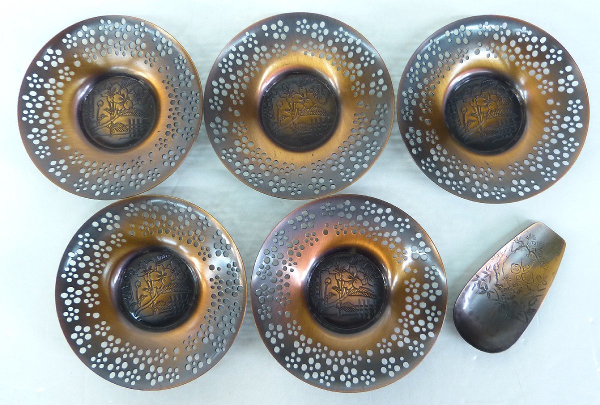 ☆USED品 ☆多少の使用感があります。 ☆茶托×5個+茶さじ×1個の合計6点セットでの出品です。 ☆状態は写真にてご確認ください。 ☆サイズ(約) ☆茶托:直径11×高さ1.8cm ☆茶さじ:全長8.5cm ●こちらの商品は佐川急便100サイズでの発送となります。 ※希望があればレターパックプラスでの発送も可能です。 ☆ご不明な点ありましたらご質問下さい。 ☆宜しくお願い致します。 ☆この機会に是非どうぞ!