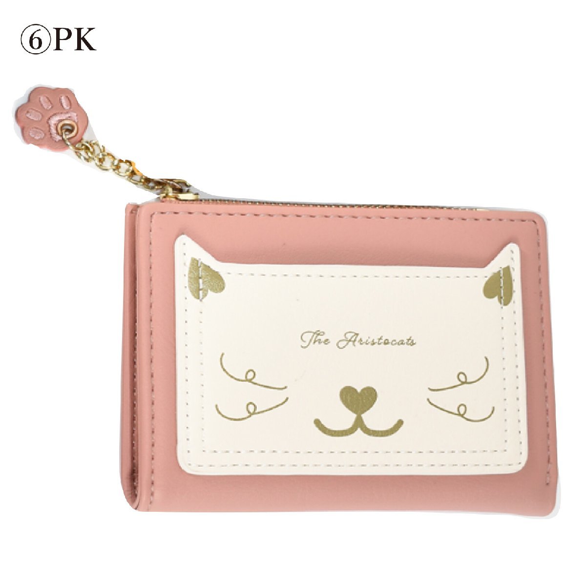 - レディースキュートなねこ顔プリント手のひらサイズ二つ折り財布(ピンク)