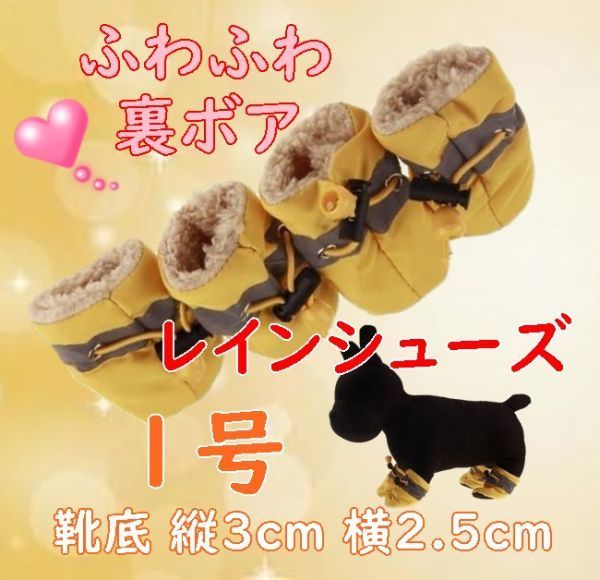 - 冬 裏起毛☆犬用 レインシューズ【黄1号/3cm】裏ボア付で暖かい! 怪我の時や悪路にも 秋冬 防寒 小型犬 雨具 長靴【イエロー】黄色