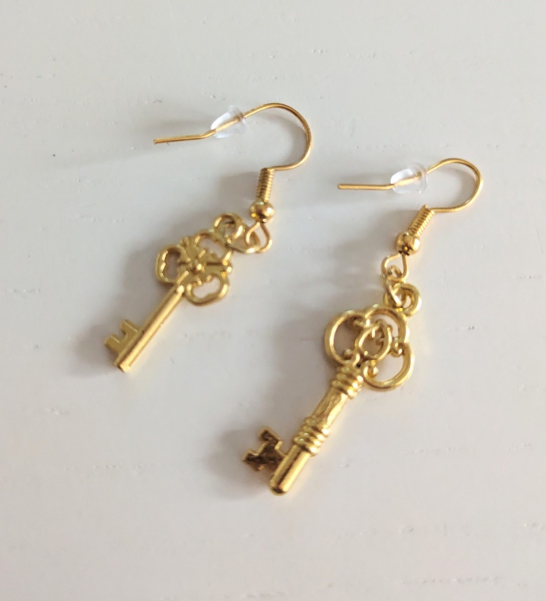 - 新品未使用 三つ葉 ゴールドカラー 鍵型 キーモチーフ フックピアス