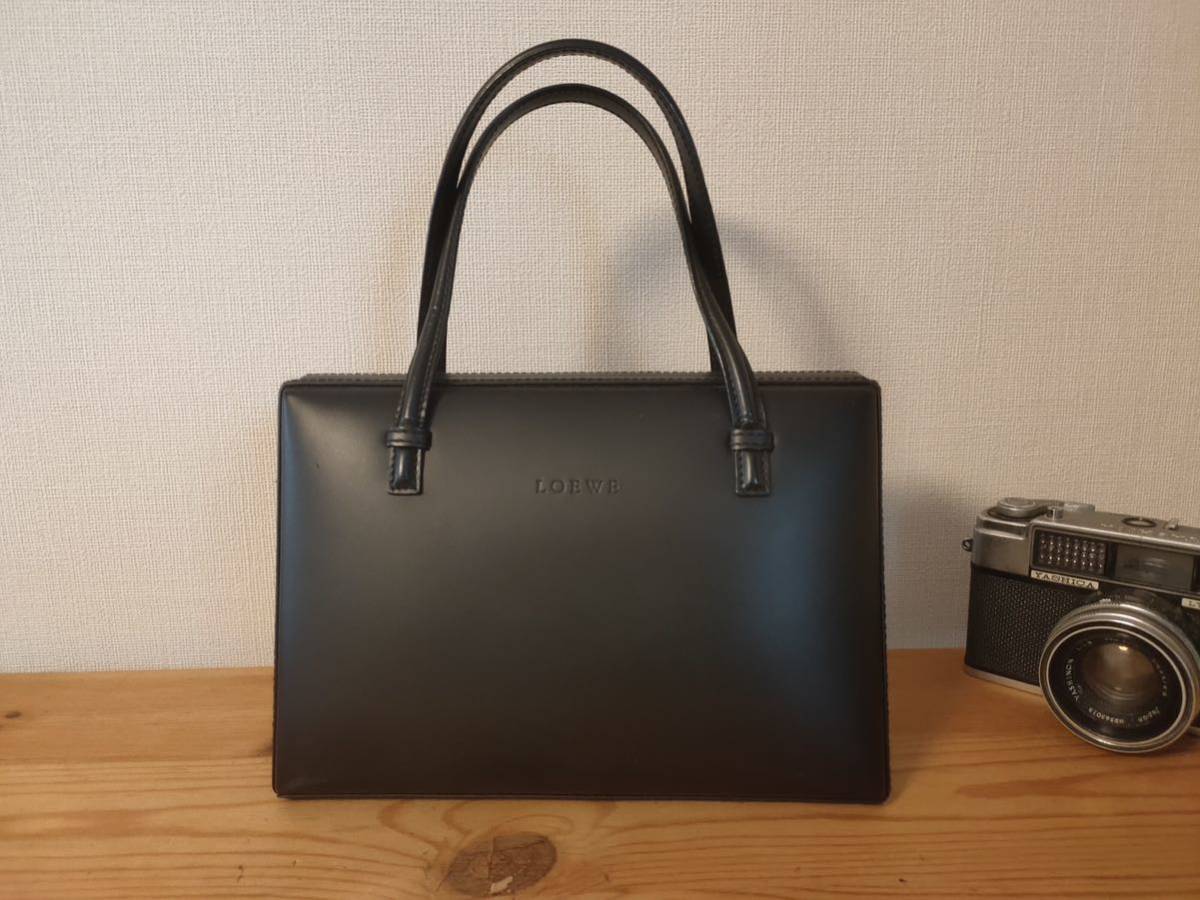 > 希少レア本物美品【ロエベ 】LOEWE ボックスカーフ ハンドバッグ ヴィンテージ 入手困難 ブラック