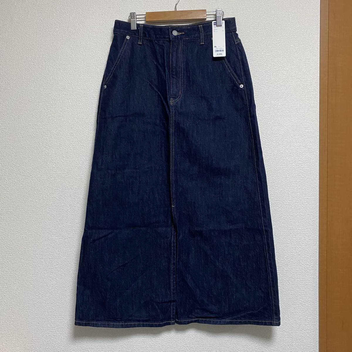 > ★GU ジーユー/デニムフロントスリットAラインスカート XL 340231 ネイビー