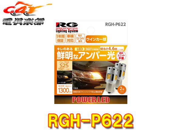 > 【取寄商品】RG(レーシングギア)RGH-P622ウィンカーバルブS25(アンバー光)12/24V兼用車検対応1年間保証(2個入り)