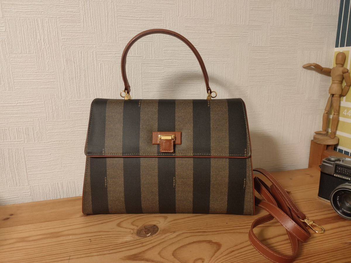 - 本物美品【フェンディ】FENDI ペカンライン ケリー型 2WAY ハンドバッグ ヴィンテージ PVC 即決