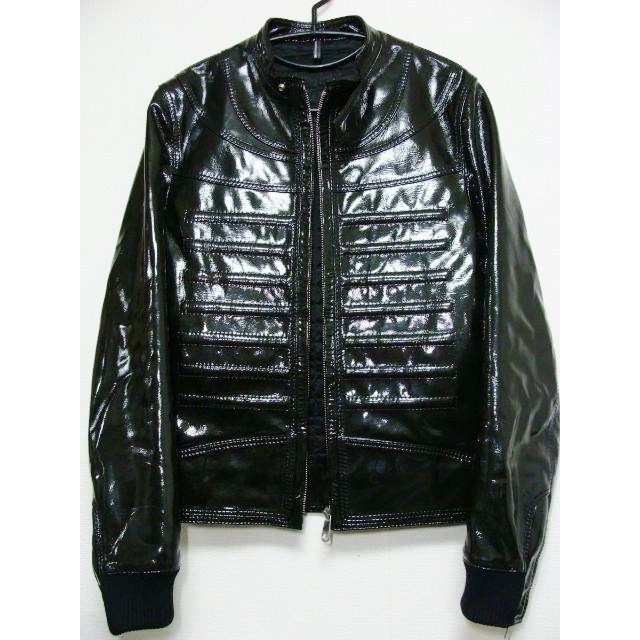 - Dior HOMME ディオール オム ◇ パテント エナメル コーティング レザー 皮 革 ナポレオン ライダース ブルゾン ジャケット