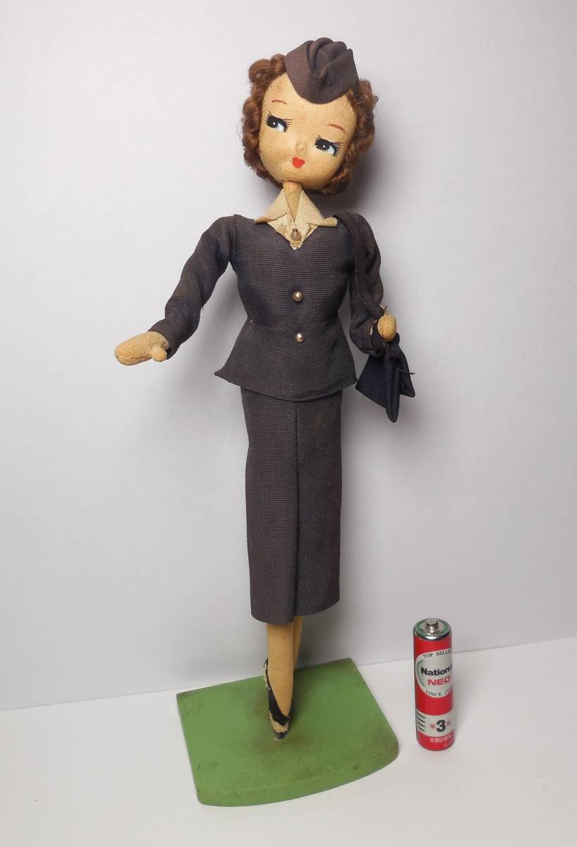 - スチュワーデス バスガイド キャビンアテンダント 人形 木台 ポーズ人形 昭和レトロ