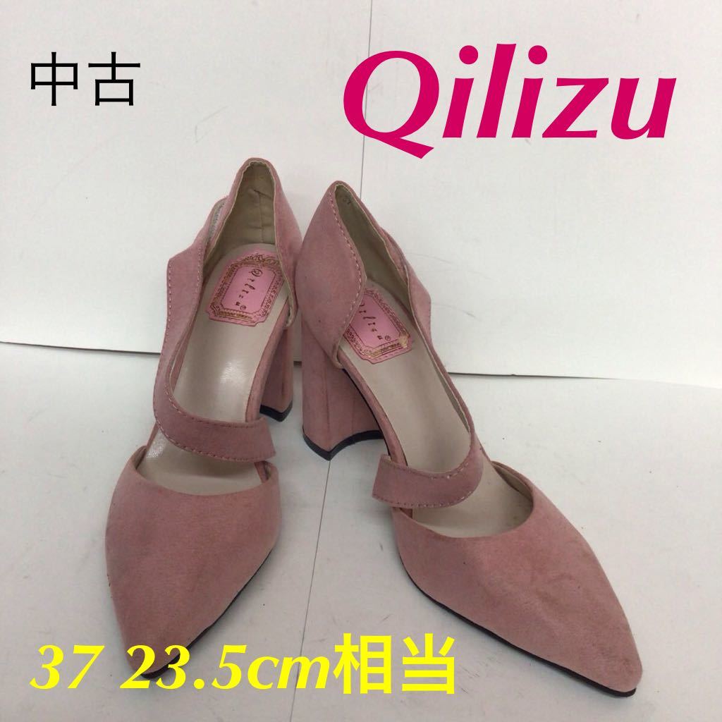 - 【売り切り!送料無料!】A-332 Qilizu!パンプス!スエード!ピンク!37!23.5cm相当!おしゃれ!かわいい!中古
