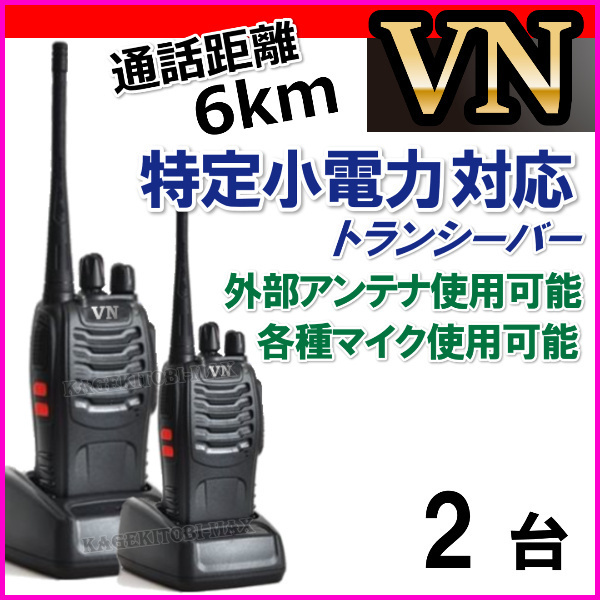 > 2台 特定小電力 対応 トランシーバー 新品●免許不要の ケンウッド アルインコ アイコム 交信可能●イヤホンマイク使用可能 VN-過激飛びMAX