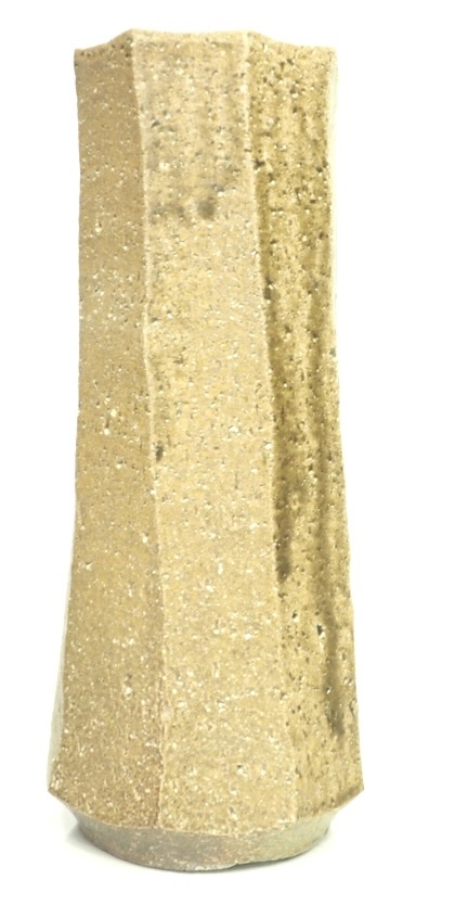 - ビンテージ 陶器 八角面取花入 一輪挿花瓶 在銘品 生花 華道具 茶道具 箱無し 1990年代 CKY512