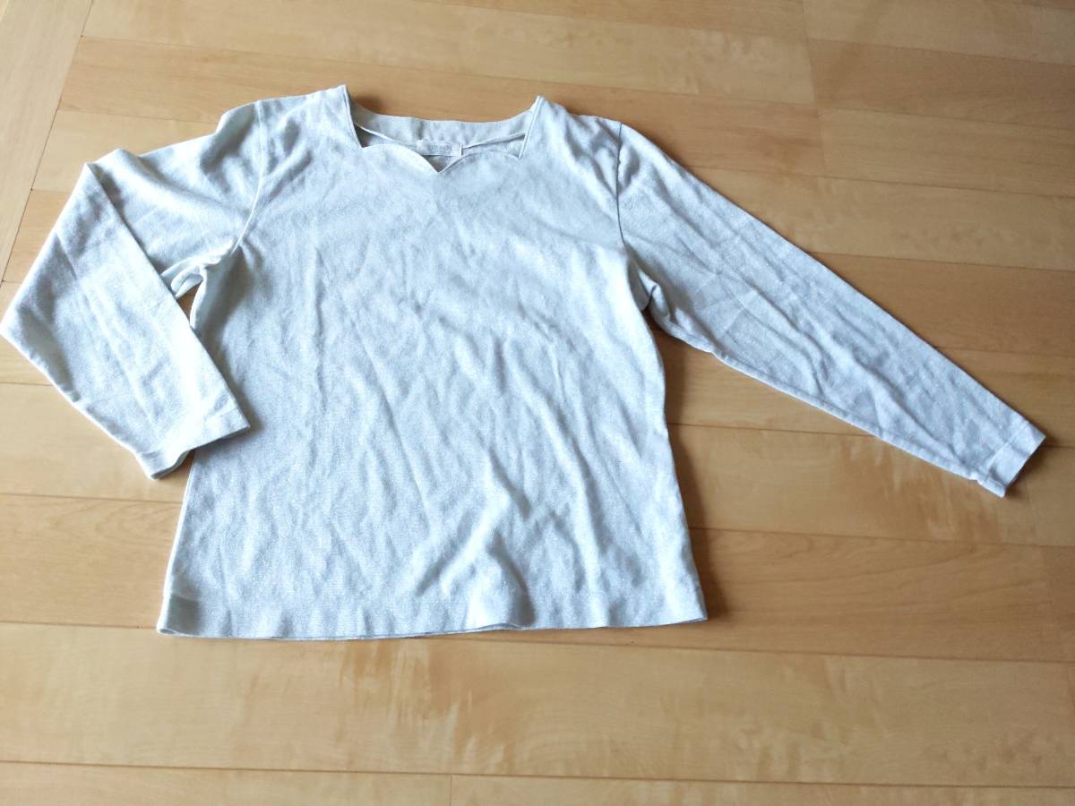 - 即決●送料無料 ●胸元かわいい!! ラメ入り【 ★長袖シャツ /カットソー】レディース M■シルバー■日本製