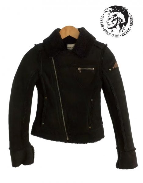 - TK 希少 ITALY製 ディーゼル DIESEL リアルムートン ライダースジャケット 黒ブラック イタリア製