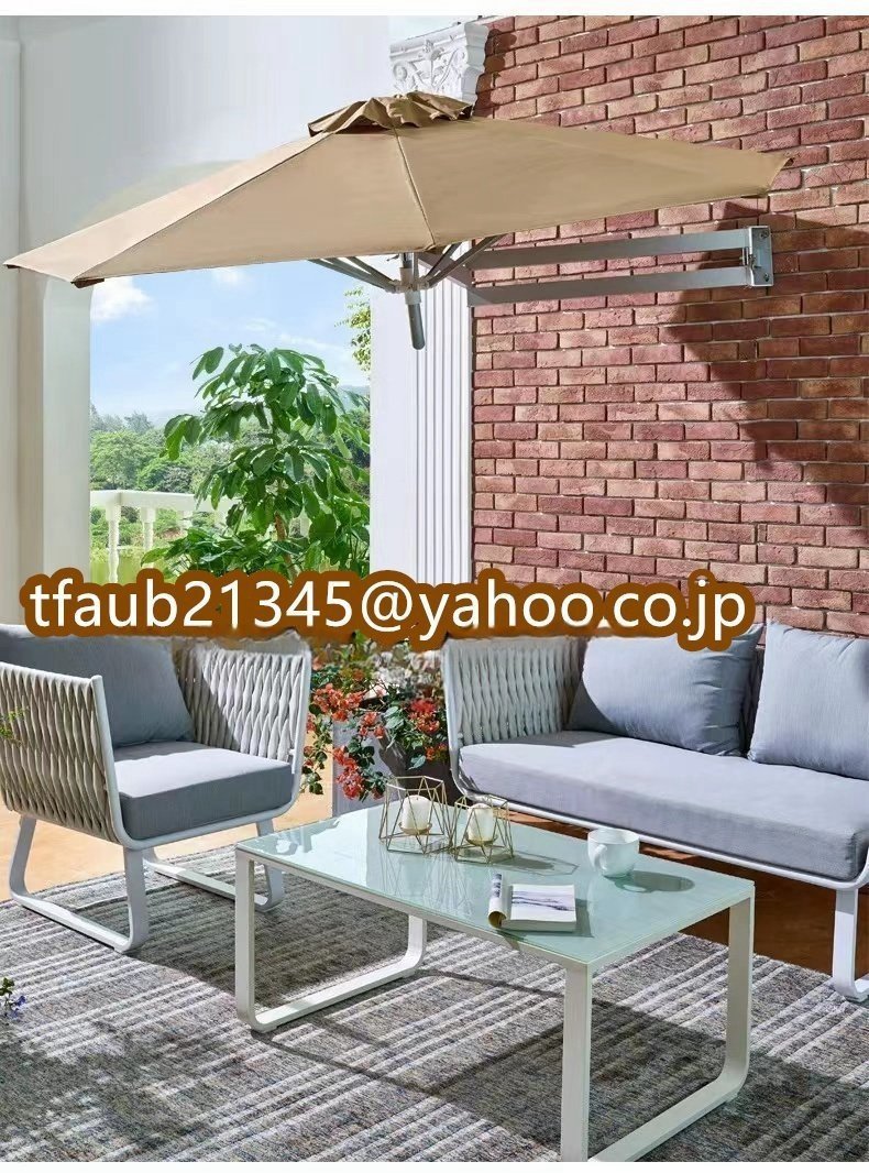 - 2.5m円形、壁掛け、折りたたみ式、ガーデン傘、角度調整可能、アルミニウム合金、裏庭の屋外、庭、テラスに適しています