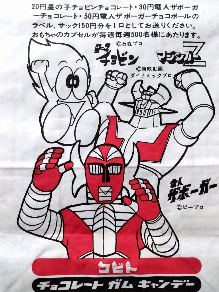 - 電人ザボーガー マジンガーZ 当時物 菓子袋 販促 紙袋 6p!☆ 明治 カール坊や 森永 カリンチョ カネボウ ボンブー コビト 星の子チョビン