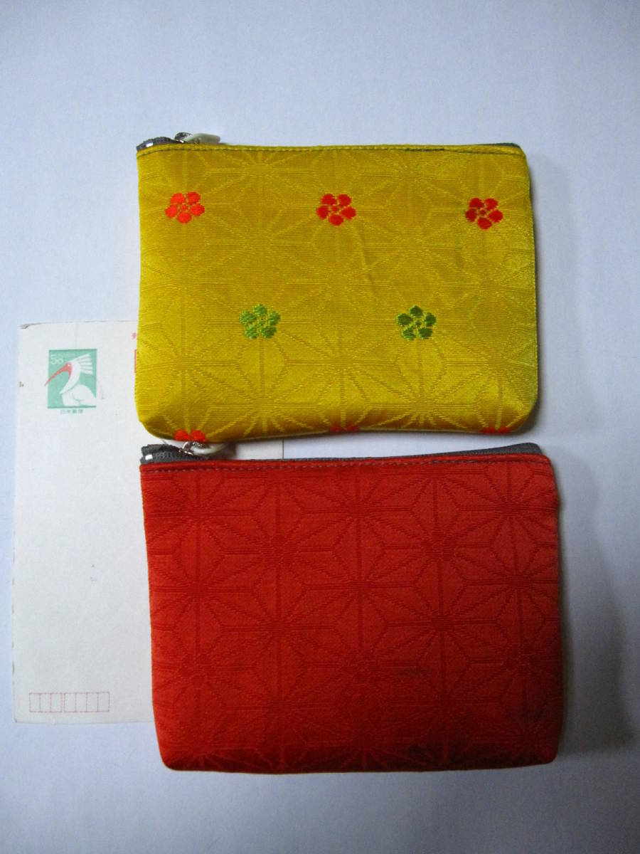 - 手作り 着物リメイク ポーチ 2点 麻の葉 梅 花 模様 華 帯 古布 セット 男女 兼用 財布 小物 ハンドメイド 格安 秋 手芸 お洒落 可愛い 祝