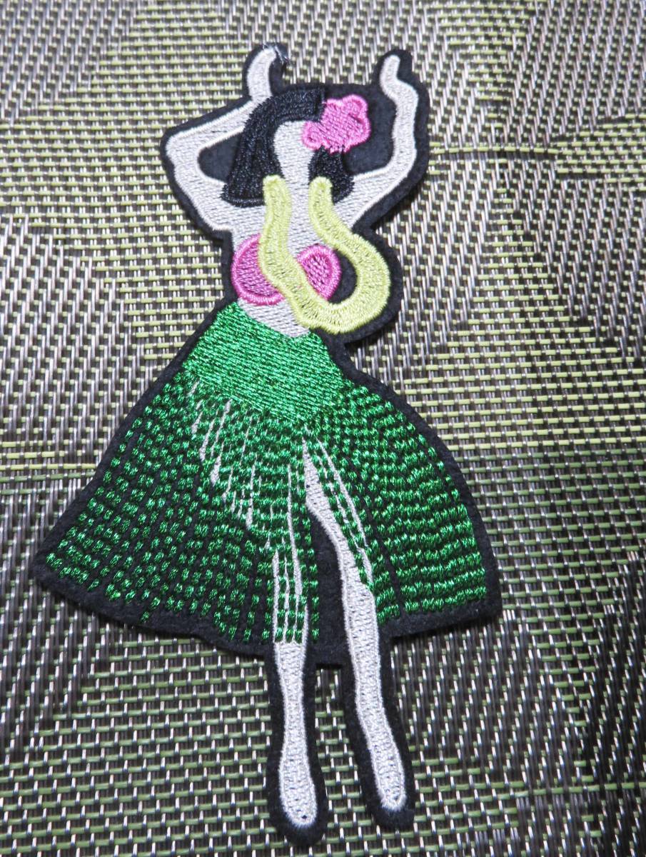 - 桃緑衣装US美女伝統踊■新品 可愛い《フラダンス フラガール》『Lady タンス』ハワイ《南国》刺繍ワッペン■衣服DIY■《幸せアイテム》