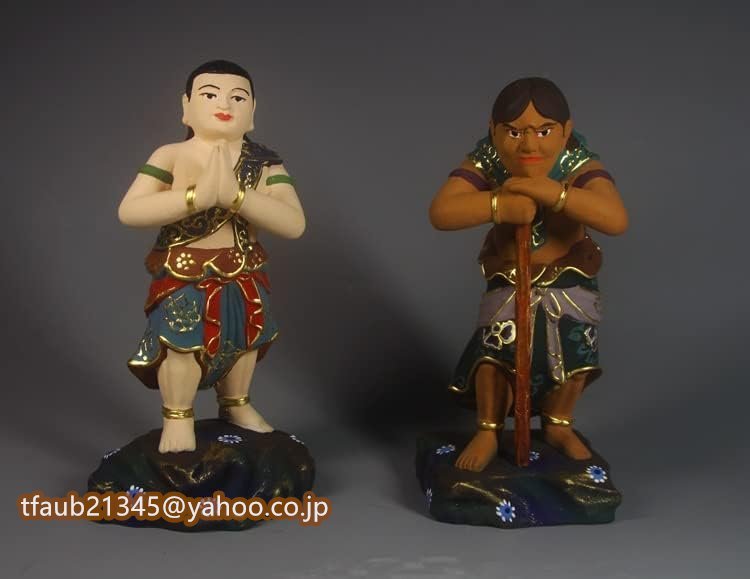 - 【ケーリーフショップ】二童子像(制多迦・矜羯羅)木彫り仏像 開運・守り本尊 極彩色絵系 (6CM)