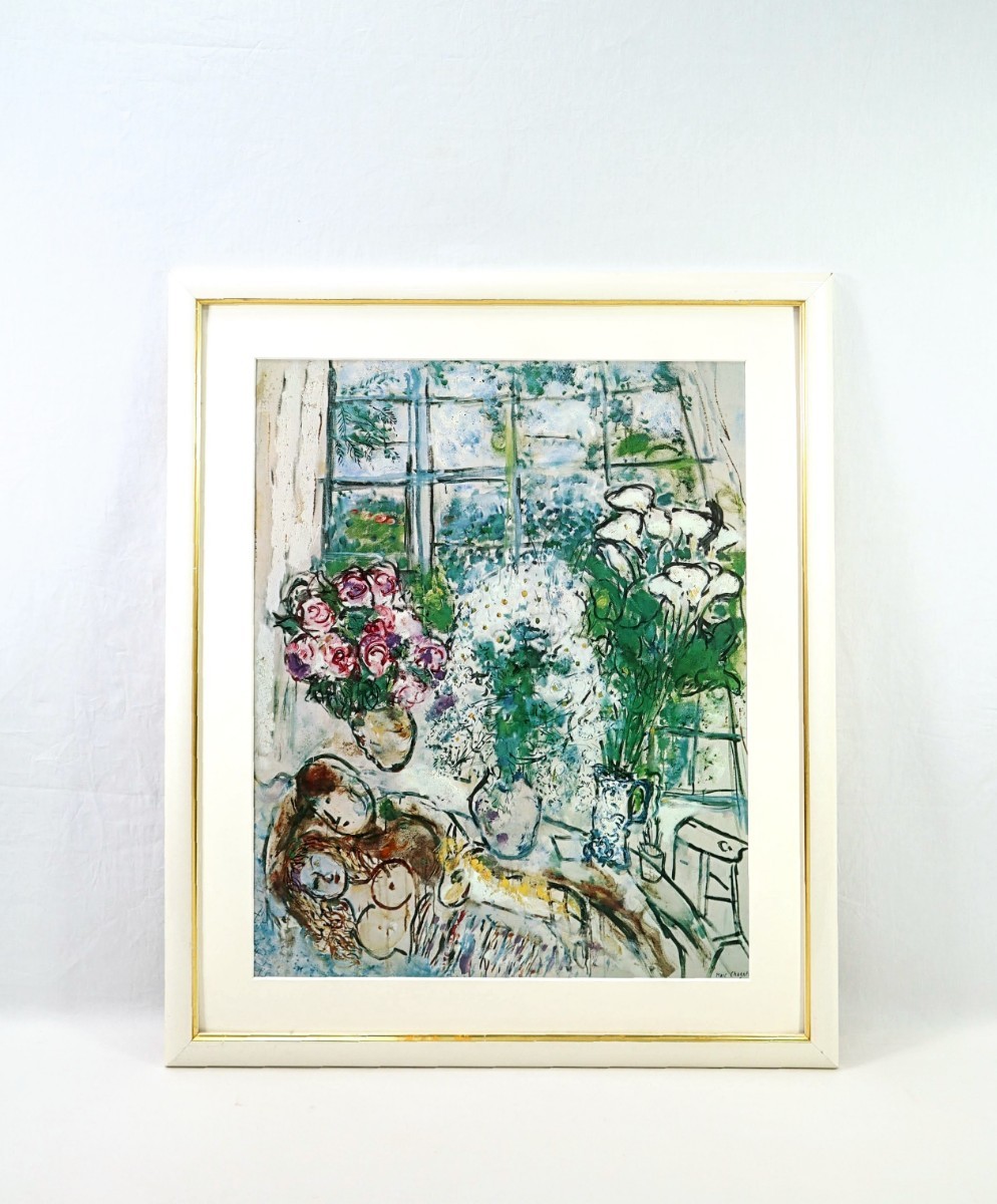 > マルク・シャガール 大判オフセット「LA FENETRE BLANCHE」画寸 49×61cm「色彩の魔術師」色彩豊か愛にあふれ幻想的 抱擁する恋人たち 8302