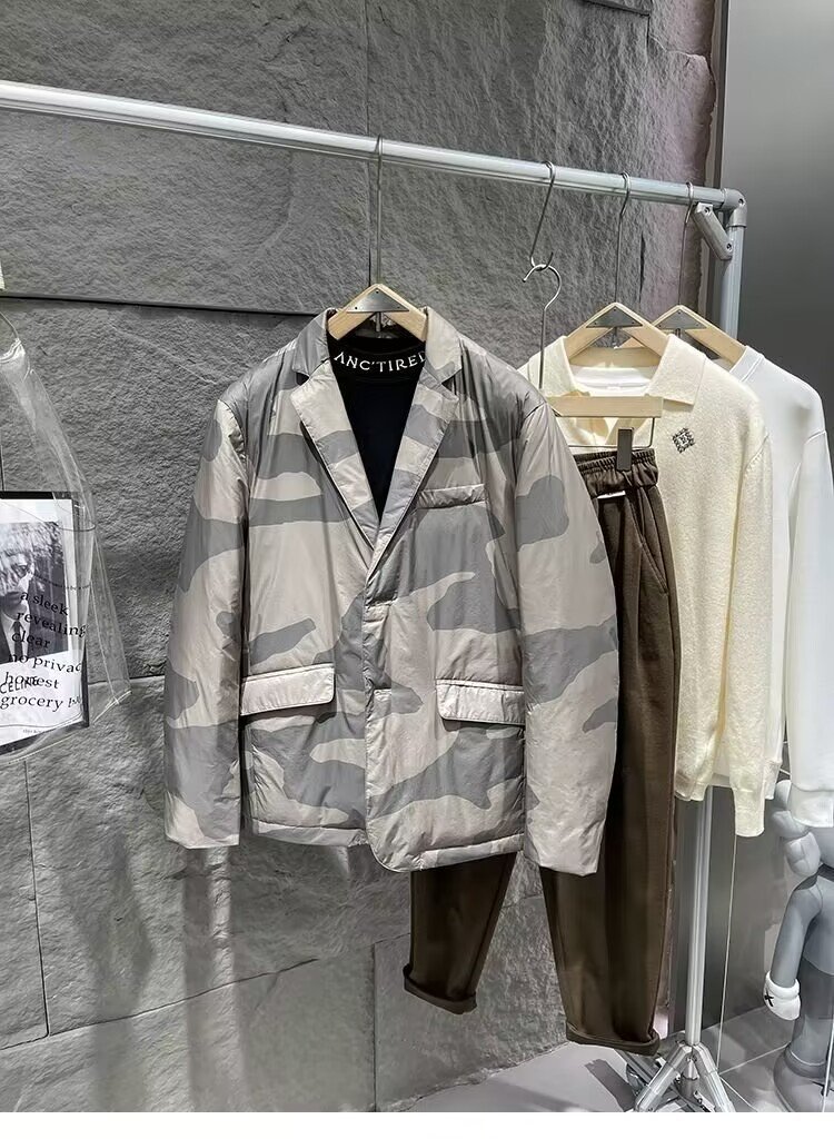 > YRXZ-シャンペン色-迷彩(実寸XL L程度) 新品 超軽量◆高級セレブdesigner* 高品質 軽量 防寒 暖かい テーラード ダウン ジャケット