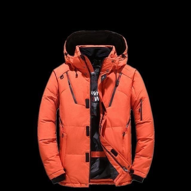 - YR-01 橙(実寸2XL)新品◆高級セレブdesigner*スキー 登山 OUTDOOR アウトドア ジャンパー ブルゾン 無地 フード付き ダウンコート
