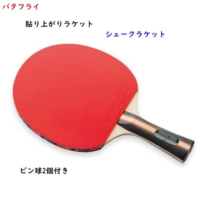 - シェークラケット/貼り上がり/バタフライ/ピン球2個付き/卓球/ラケット/ステイヤー/1980円即決