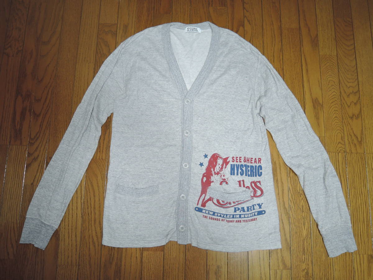 - HYSTERIC GLAMOUR ヒステリックグラマー 薄手 カーディガン M 灰 スウェット調 ガールロゴ LOGO /