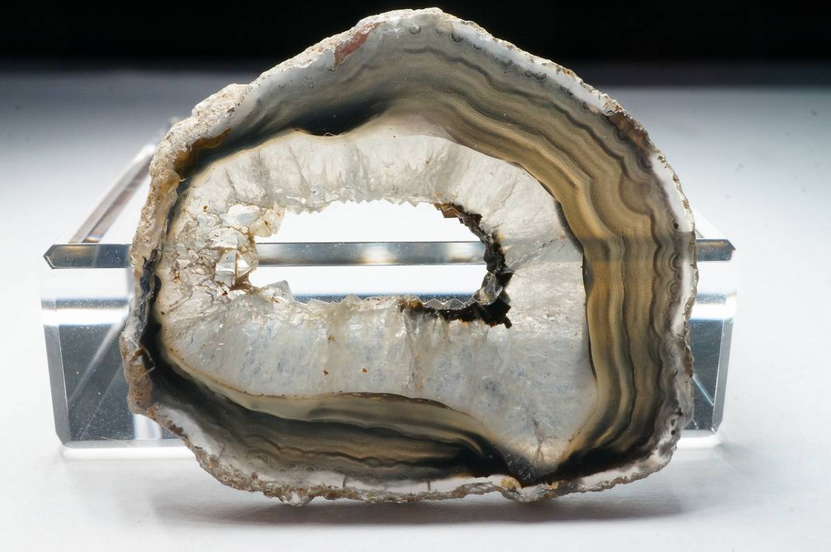 - 30年前の希少在庫!アゲートジオード・ドーム水晶、石英クラスターが神秘的(メノウ・瑪瑙)両面研磨原石6.62g