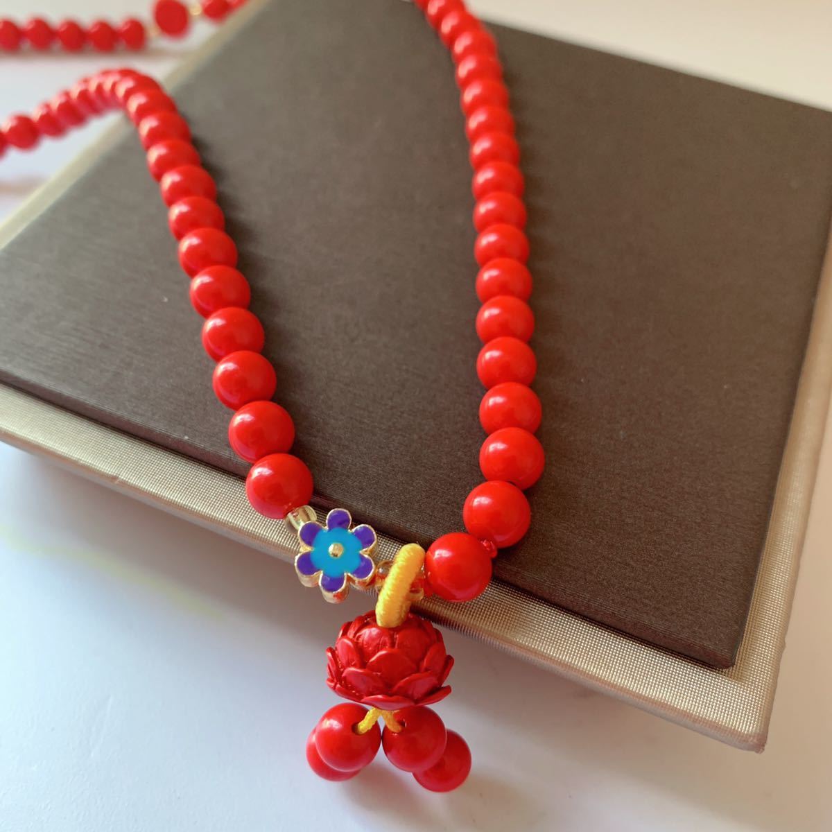 - ◇シナバー(辰砂)+貔貅+蓮の花◇ネックレス◇ブレスレット◇パワーストーン◇巾着袋付き◇プレゼントにも018P122204