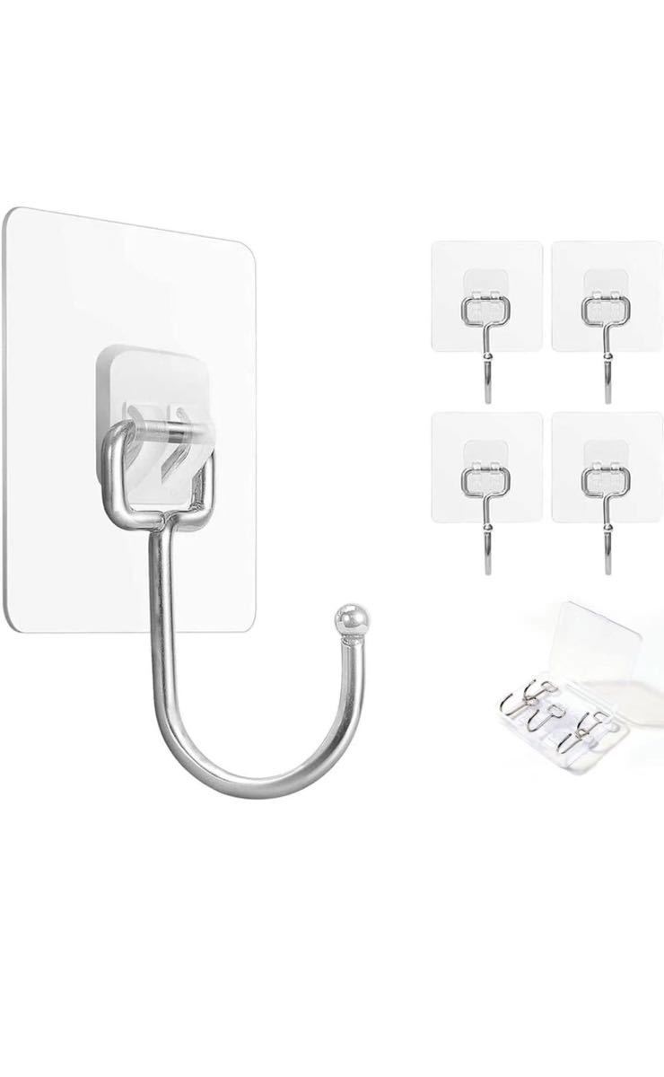 - 壁掛けフック 透明フック 粘着フック 壁フック 耐荷重20KG 傷つけない