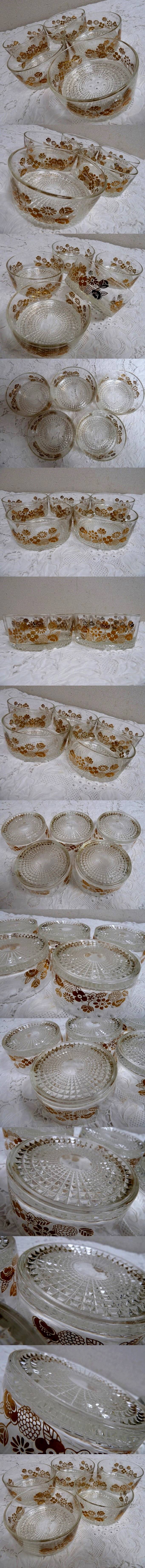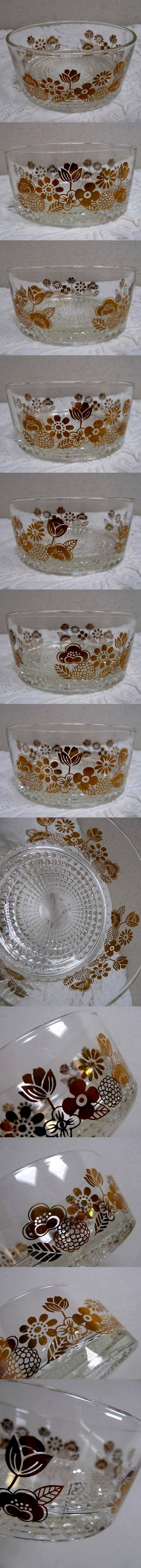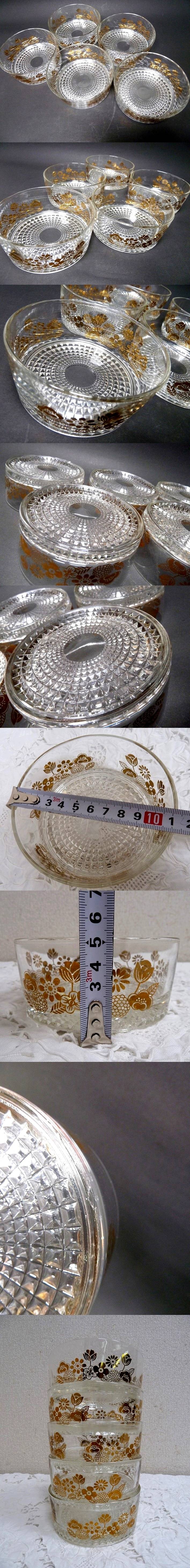 > (☆BM)懐かしい♪昭和レトロ ガラス ボウル 4客 ゴールド 直径11.4㎝ 金彩 花柄 寸胴 サラダボウル 中鉢 ヴィンテージ アンティーク調