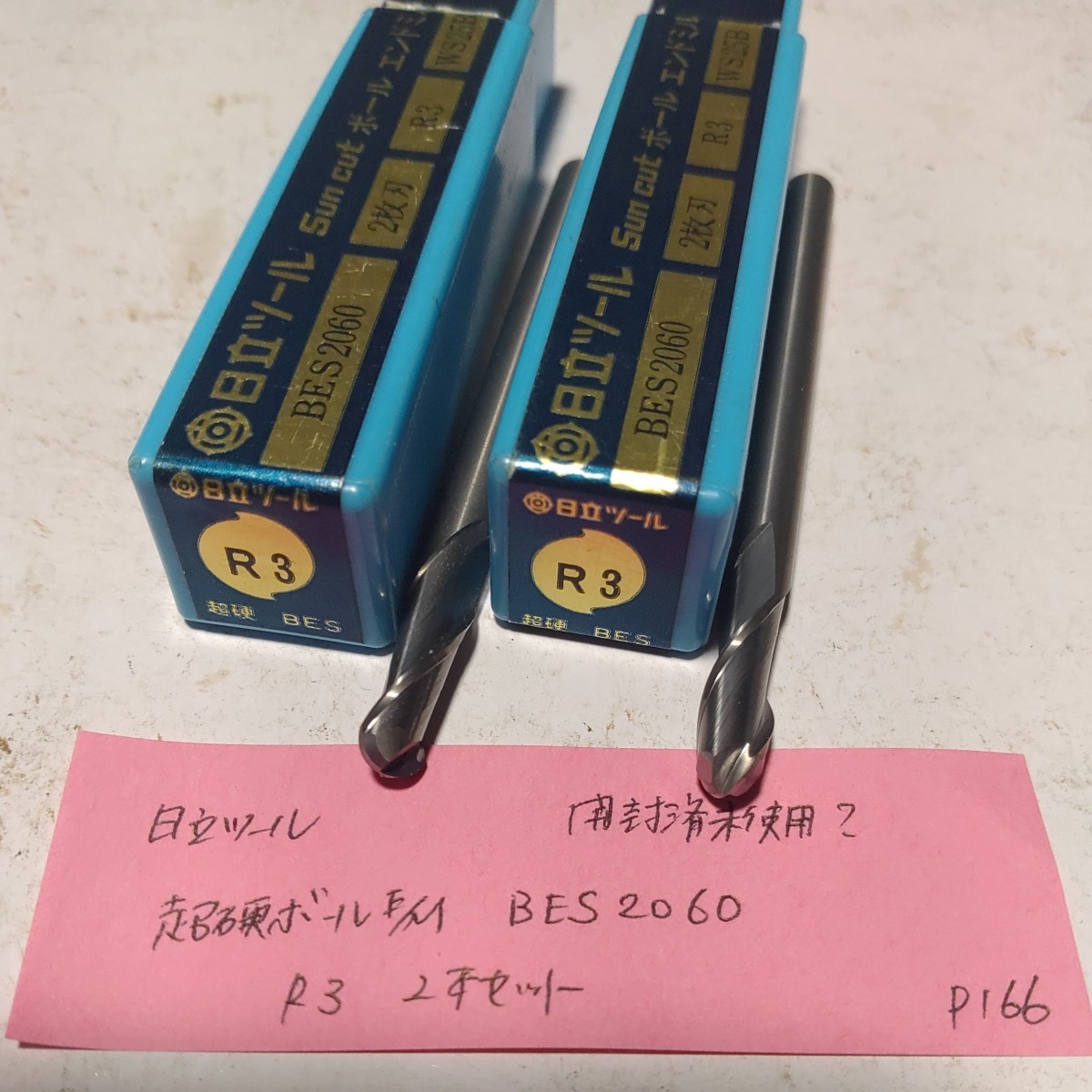 - P166 開封済未使用 日立ツール 超硬ボールエンドミル BES2060 R3 2本セット