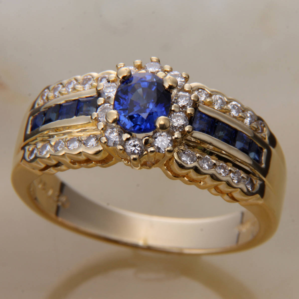 - ke9791◆磨き済 18KT刻印リング サファイア&ダイヤモンド 12号