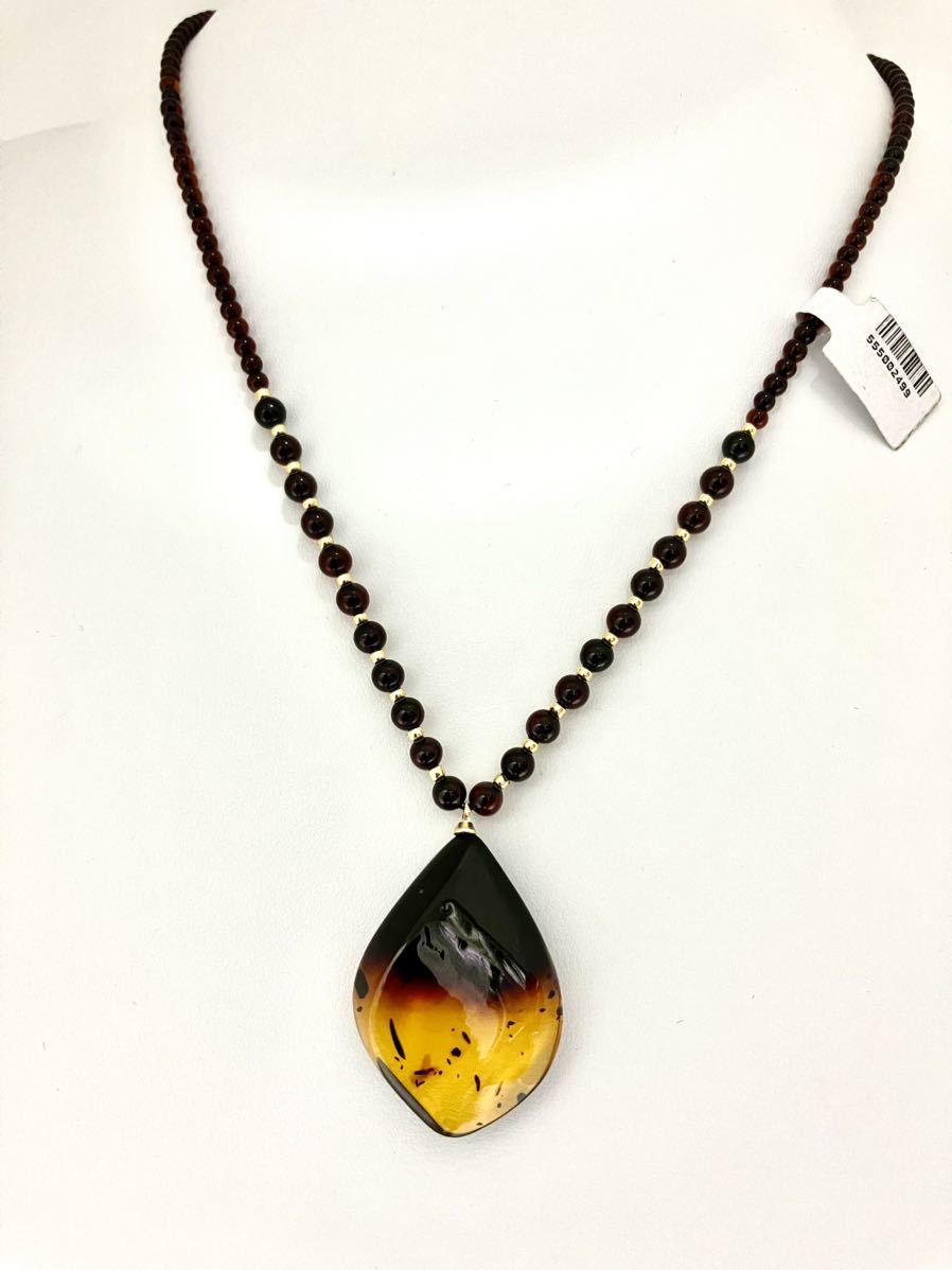 - 【新品】リトアニア産琥ペンダント*ネックレス*こはく*コハク*アンバー*グラデーションカラー*シンプル