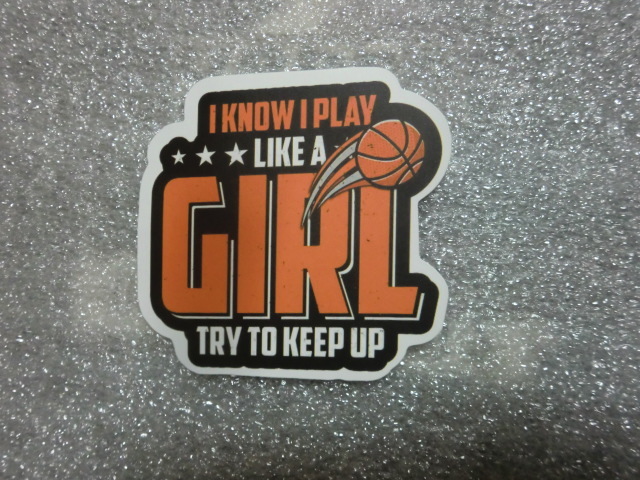 - バスケットボール I KNOW I PLAY LIKE A GIRL TRY TO KEEP UP ステッカー