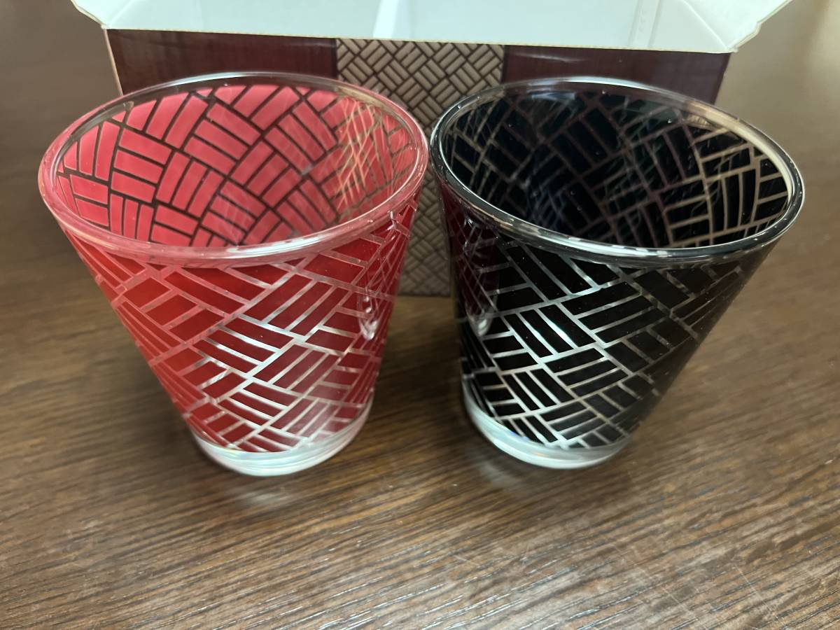 - ☆モダン伝統柄グラス 網代模様 2客組 ガラス タンブラー ペアグラス 箱入☆未使用